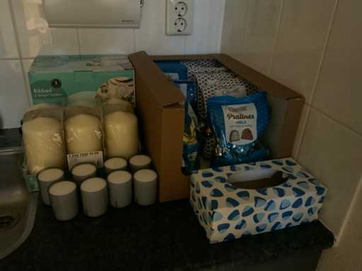 Bestaande uit vaatwasmachine, koelkast, tchibo Qbo koffiemachine, waterkoker, kaarsen, borden, glazen, pralines e.d. inhoud van de keukenkastjes waaronder