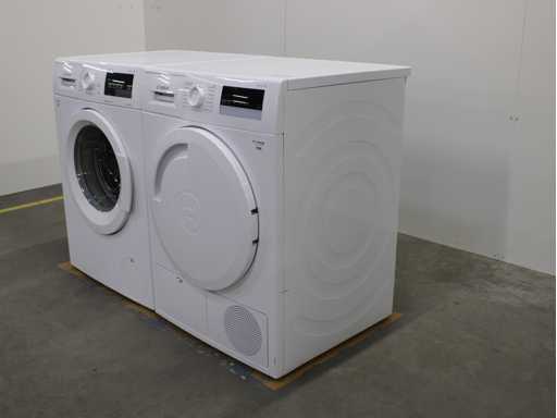 Deze wasmachine en wasdroger komen uit een partij jong gebruikt A-Merk witgoed. De machines zijn volledig getest, gereinigd en indien nodig gerepareerd. Houdt er rekening mee dat de machines lichte gebruikssporen kunnen hebben. Wasmachines en wasdrogers hebben vaak standaard afmetingen. Hoogte 85cm, Breedte 60cm en Diepte 60 tot 70cm, incl. uitstekende slangen e.d. aan de achterzijde. Als de machine vrij komt te staan is de afmeting minder relevant. Wil je de machine in een nis plaatsen of inbouwen? Controleer dan de exacte afmetingen op basis van het aangeboden merk en model/type.