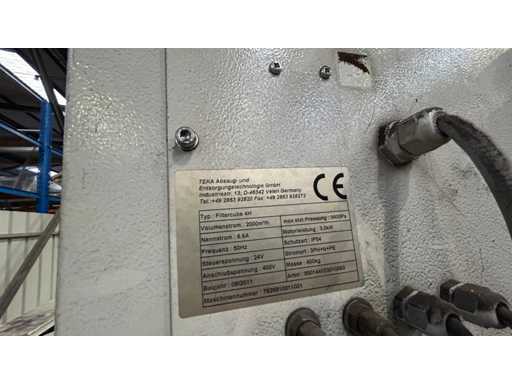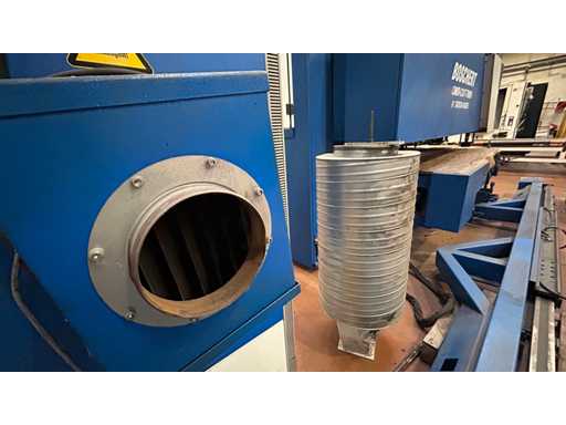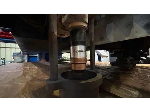 Apparatuur: ponskop met roterende koepel, Hypertherm plasmasnijsysteem, TEKA Filtercube 4H zuigeenheid (debiet 2000 m³/u, motor 3 kW), aparte