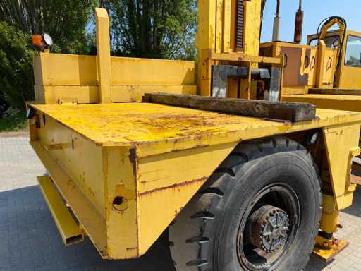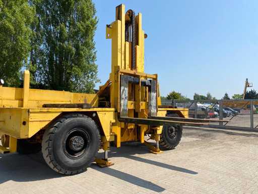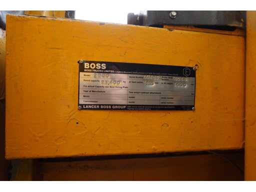 Boss zijlader, type 2000, serienummer 004251, werksordernummer 13088. De machine heeft een hefvermogen van 23.400 kg bij een lastcentrum van 1220 mm en een maximale hefhoogte van 7500 mm. Uitgevoerd met cabine en zijmast Let op! bouwjaar onbekend en urenstand ook