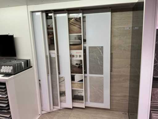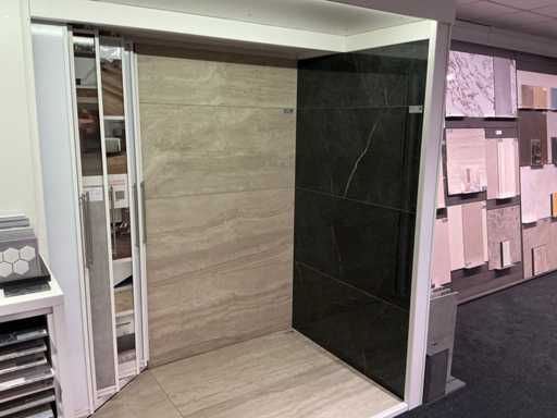 Met schuifpanelen, Voorzien van tegelstalen. Zonder de los verkavelde televisie.