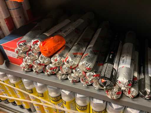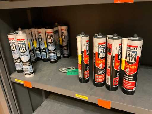 Waaronder diverse montagelijm, siliconen en afdichtingsmiddelen Soudal en Distyk.