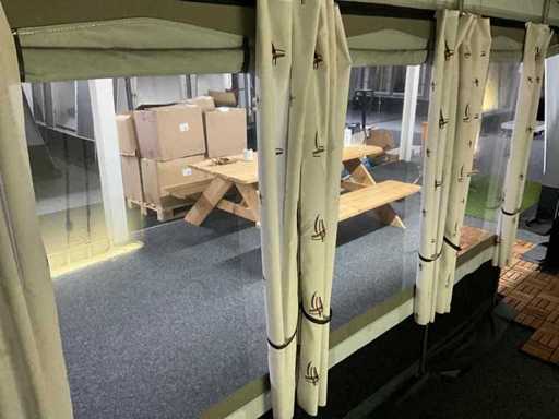 Omloopmaat: 10, 877-897 cm, voortentdiepte: 240 cm, dakmateriaal: Dubbelzijdig PVC 550 gr/m2, wandmateriaal: TenCate AllSeason / PVC, frame: Staal Ø 25x1 mm, inclusief tenttegels
