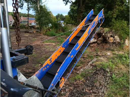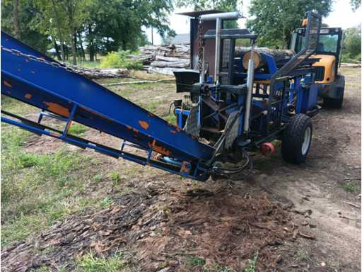 Eigenbouw brandhoutautomaat, cardanas aangedreven en volledig hydraulisch.