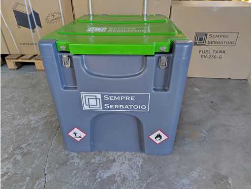 Diesel IBC opslagtank mobiel, met slang en automatisch vulpistool, tankmeter, afsluitbare dop, klep cilinder, en sjorband vastzetbeugels. in doos, 200 liter