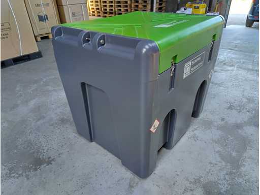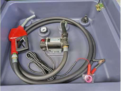 Diesel IBC opslagtank mobiel, met slang en automatisch vulpistool, tankmeter, afsluitbare dop, klep cilinder, en sjorband vastzetbeugels. in doos, 400 liter
