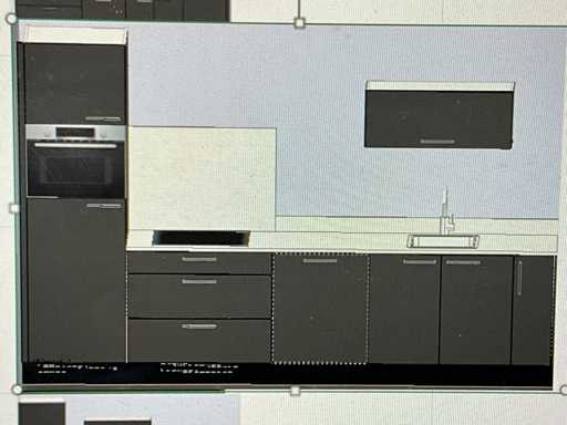 Bribus keuken - 329cm v.v. Bosch inbouwapparatuur, Composiet Werkblad, kleur U1233 Grafiet (NIEUW IN DOOS)