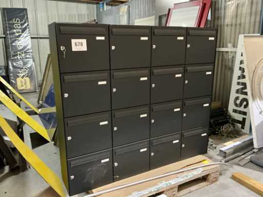 Voorzien van 16 aparte brievenbussen met afmeting 150 x 30 x 132 cm, inclusief sleutels