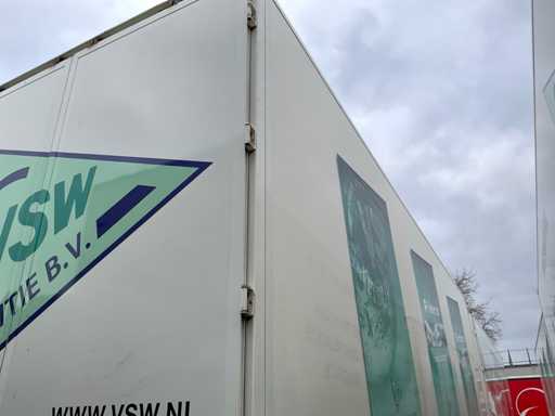 Voorzien van twistlocks, steunpoten, afmeting circa 7,45x2,55meter