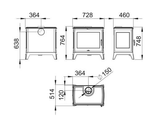 Bronpi - Bury 14 3-zijdig gietijzer - Houtkachel