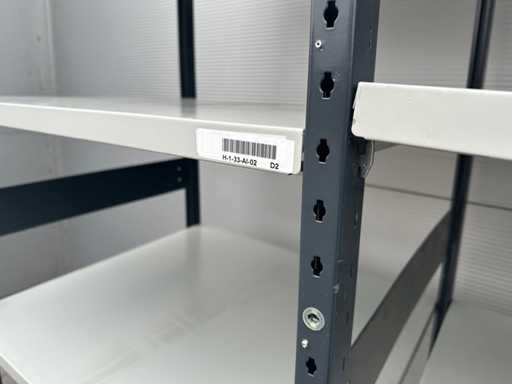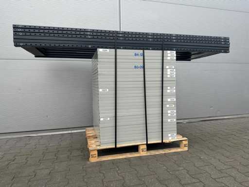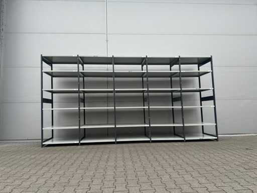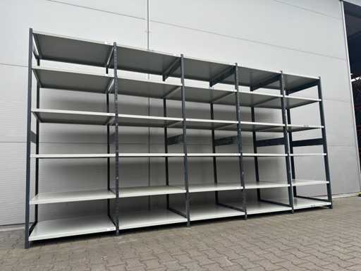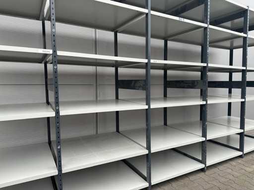 Gebundeld; Gebruikt; 12x staander 2400x800mm; 60x legbord 870x800mm; 6827*12 / 6828*60