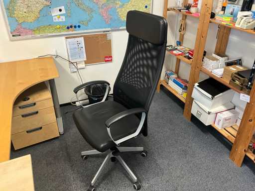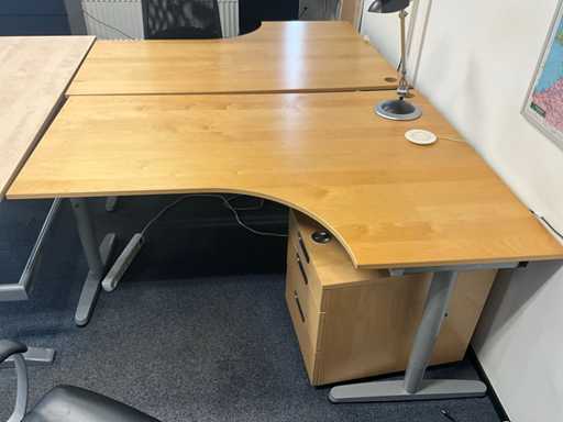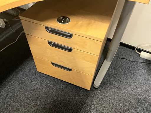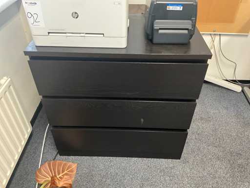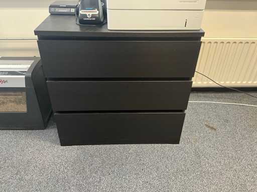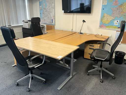 Inclusief 1x bureau afmetingen (180x80x74cm) 3x bureaustoel, 3x ladeblok, 2x lade kast zwart afmetingen (80x48x78cm) met inhoud. Diverse printers niet inbegrepen!