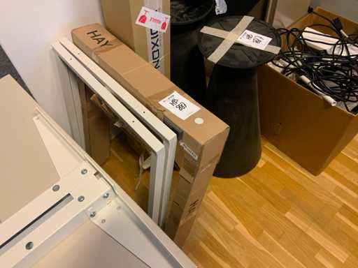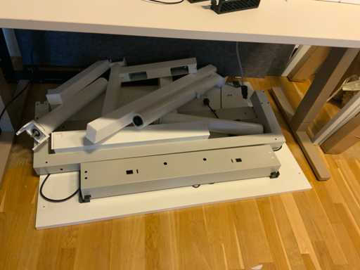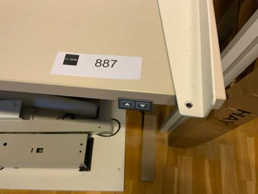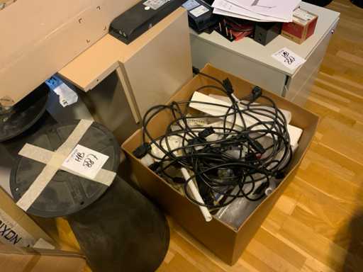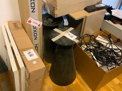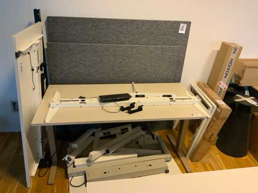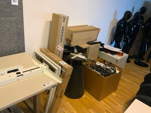Bestaande uit onderdelen van elektrisch verstelbare bureaus, tafel poten van Hay en Pedrali en een ladeblok. Dit kavel staat op de eerste verdieping bereikbaar middels een vaste trap. Er is geen lift aanwezig.