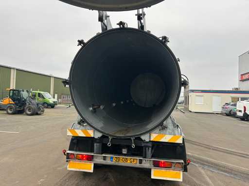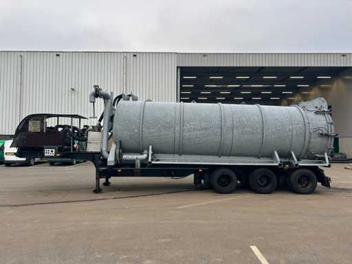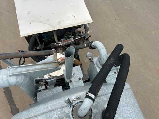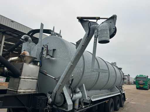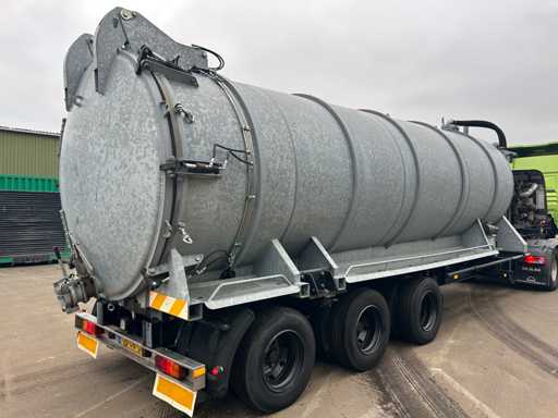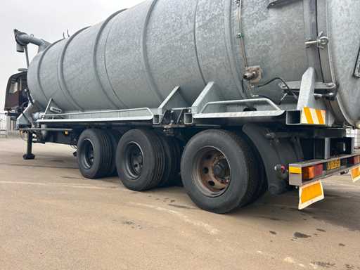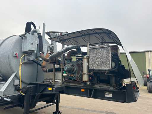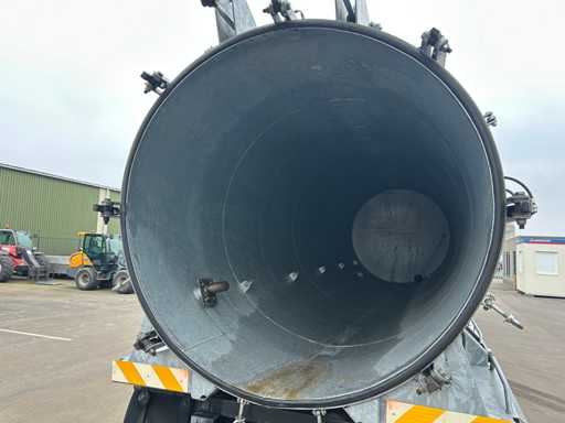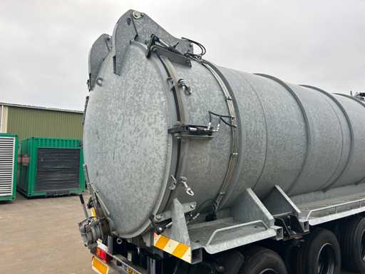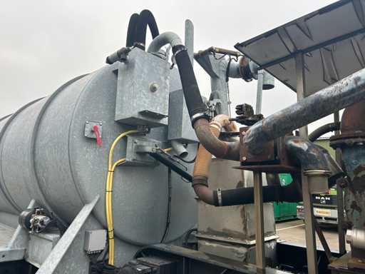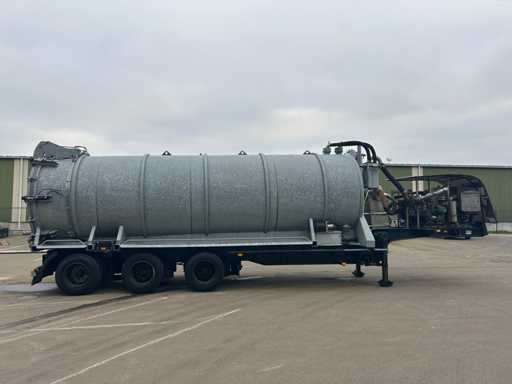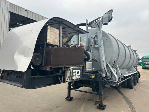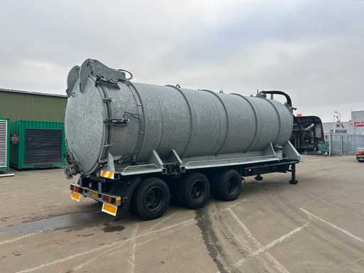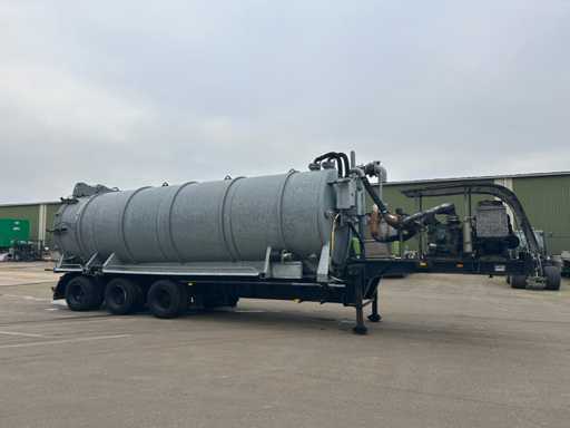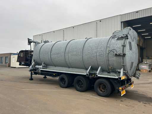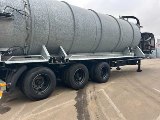 Opbouw tanktrailer / tankoplegger voorzien van een stalen tank, geschikt voor het transport en verwerken van vloeistoffen. De tank heeft een inhoud van ca. 26.500 liter en is opgebouwd op een opleggeronderstel. De opbouw is uitgevoerd met een hydraulisch bediende achterwand en meerdere zuig- en losvoorzieningen, waaronder een zijdelings gemonteerde zuigarm (ca. 8”) en extra zijaansluitingen met snelsluiting. De tank is voorzien van een twistlock-systeem. De installatie is uitgerust met een Mitsubishi dieselmotor, type S4S-DP, met een opgegeven vermogen van ca. 42,3 kW bij 2300 rpm, welke dient voor de aandrijving van de installatie, in combinatie met een vacuümpomp. Hydraulische leidingen, afsluiters en mechanische componenten zijn zichtbaar aanwezig. Volgens opgave is de tank niet in regulier gebruik genomen en uitsluitend ingezet voor testdoeleinden; de binnenzijde van de tank is leeg en toont lichte gebruikssporen passend bij testgebruik (zie foto's). Er is geen recente reiniging, keuring of technische inspectie uitgevoerd. Kenteken: OB-08-GF. Let op: de trailer is niet (meer) gekeurd en derhalve niet direct inzetbaar op de openbare weg zonder herkeuring. Let op; kijken op afspraak via aanmelden@troostwijkauctions.com. Het object dient op de dag van ophalen te worden overgeschreven.