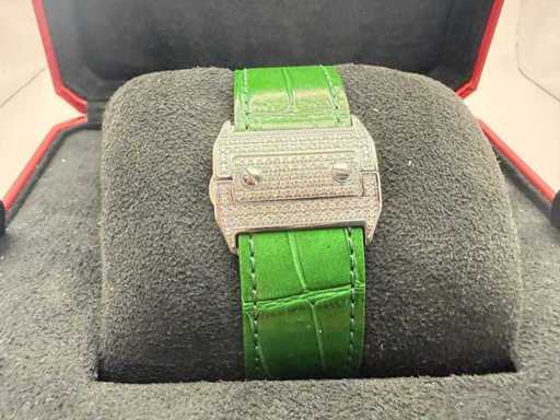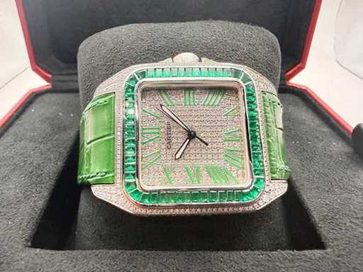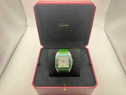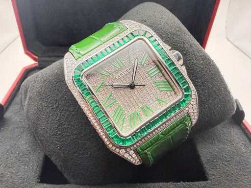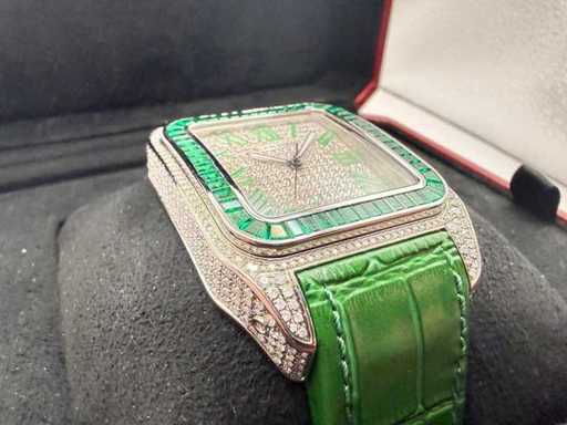 Cartier Santos 100 XL | ICED out with natural diamonds | Unworn | Green