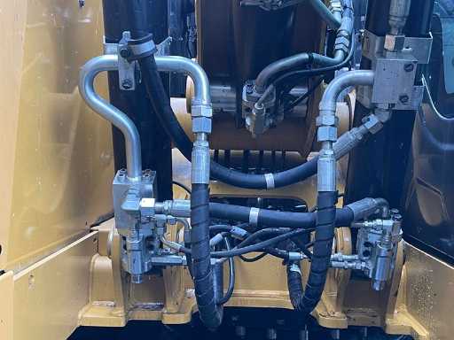 Motor: Caterpillar C4,4 - CE + EPA gekeurd - triple boom - extra hydraulische leidingen - hydraulische snelkoppeling - 1 bak - hydraulische duim - dozerblad - centrale smering