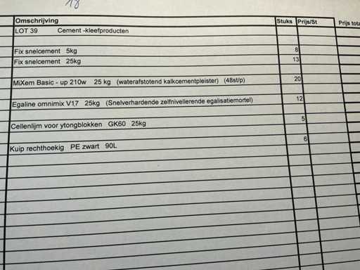 Fix snel cement, MIXem Basic -up 210w, Egaline omnimix V17, cellenlijm voor Ytongblokken, Kuip rechthoekig 6 stuks