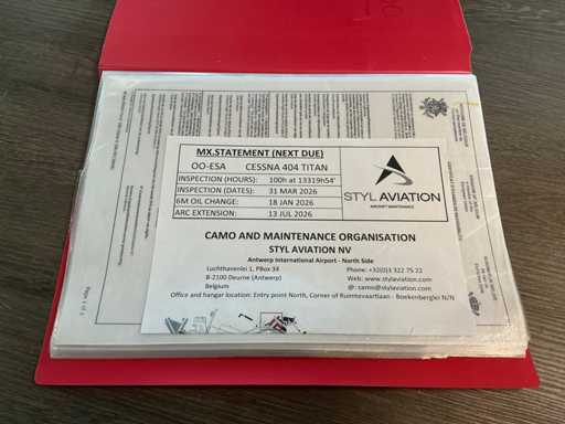 Het vliegtuig bleef tot 12 november 2025 in gebruik en is volledig luchtwaardig. Het staat momenteel opgeslagen in een overdekte hangar en verkeert in goede staat. Eén motor moet binnen de komende 70 vlieguren worden vervangen. Er is een offerte voor deze werkzaamheden opgevraagd en deze kan op verzoek worden gedeeld met geïnteresseerde kopers. De geoffreerde kosten bedragen € 78.000 en deze kosten zijn volledig voor rekening van de koper. De koper kan ervoor kiezen de vervanging te laten uitvoeren door een erkende onderhoudsorganisatie naar keuze.