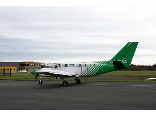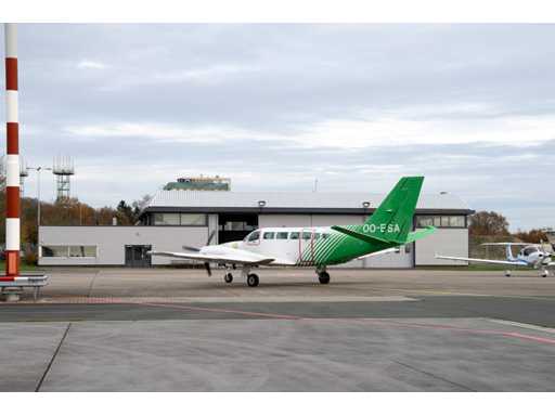 De Cessna 404 Titan (registratie OO-ESA) is een veelzijdig en betrouwbaar tweemotorig vliegtuig, ideaal geschikt voor luchtkartering, fotografie en inspectievluchten dankzij de installatie van drie meetluiken. Het toestel kan ook eenvoudig worden omgebouwd voor passagiersvervoer, zakenreizen, medische vluchten of andere charterdoeleinden. Dit specifieke vliegtuig onderscheidt zich door zijn uitzonderlijke endurance van 10 uur en de drie speciale meetluiken, waardoor het perfect is uitgerust voor langdurige en veeleisende missies.