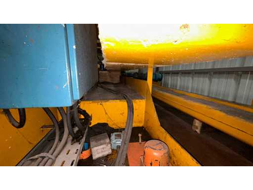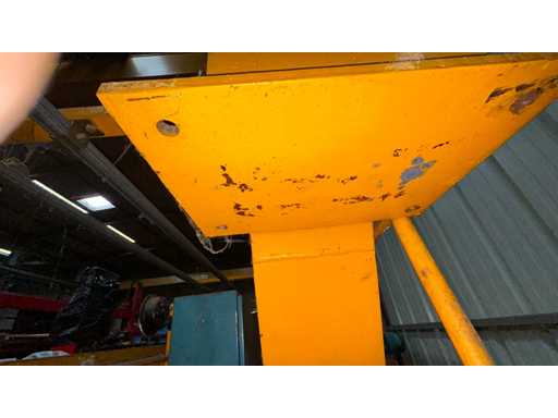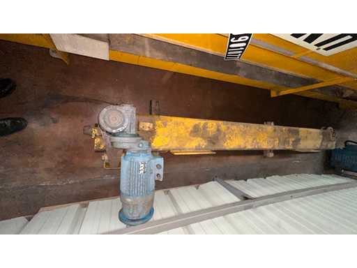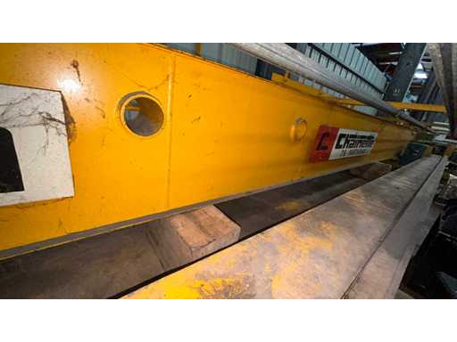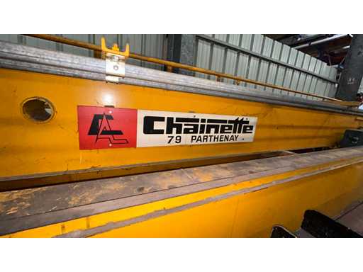 CHAINETTE bovenliggende kraan met een capaciteit van 5 ton en een spanwijdte van 11 meter, uitgerust met een elektrische kettinglift. Robuuste Franse productie, geschikt voor zwaar hanterend werkplaatsen.