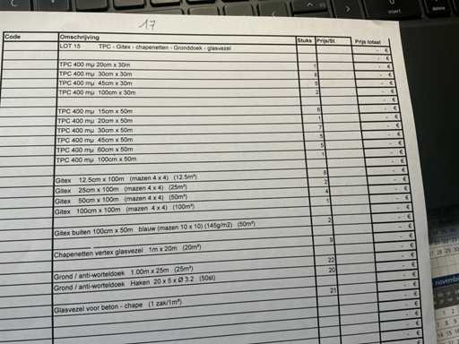 TPC 400, Gitex, Gitex buiten blauw, chapenetten vertex glasvezel, grond/anti worteldoeken- haken, glasvezel voor beton. Zie foto
