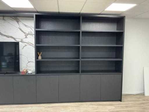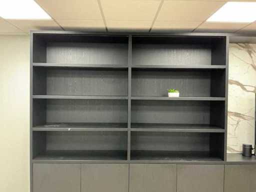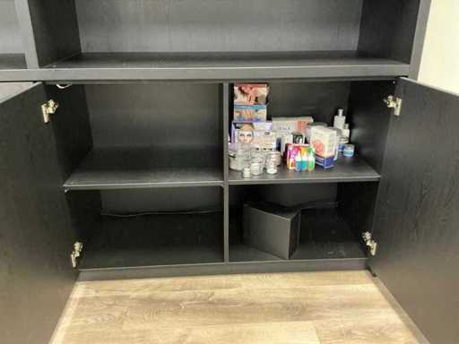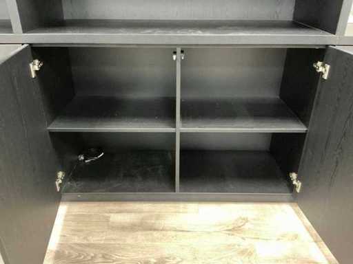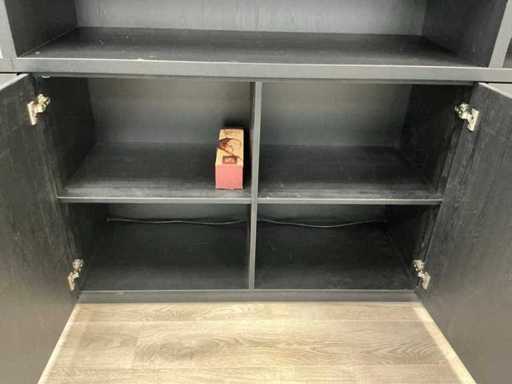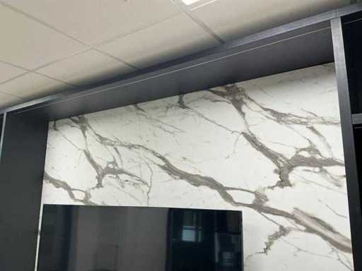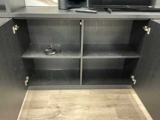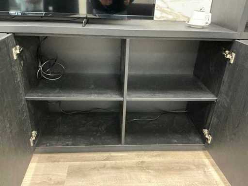Kast met marmerlook tussenpaneel, deuren met push- to open. TV en inhoud niet inbegrepen.