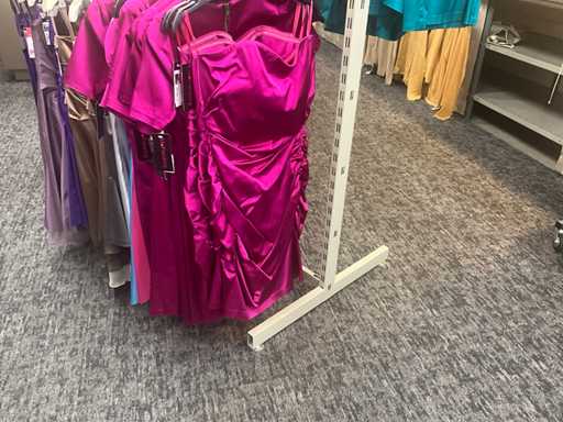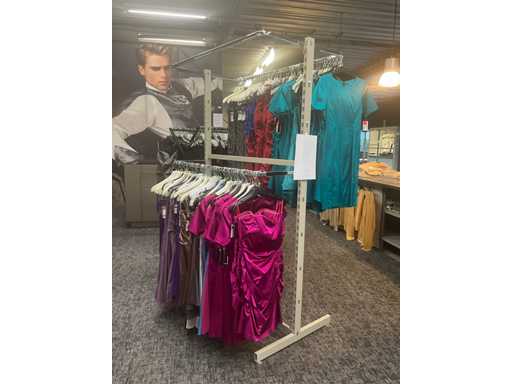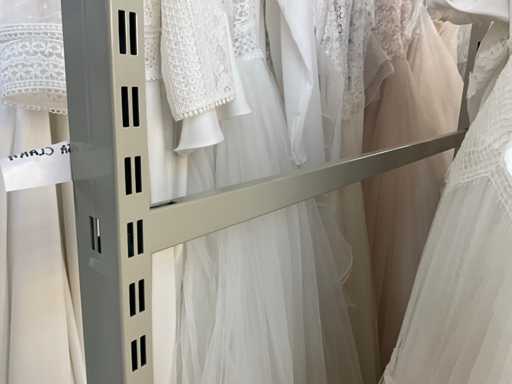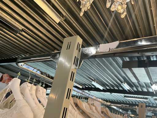 Modulaire metalen winkelrekken voorzien van rvs (in de hoogte) verstelbare dubbelzijdige hangsteunen.
