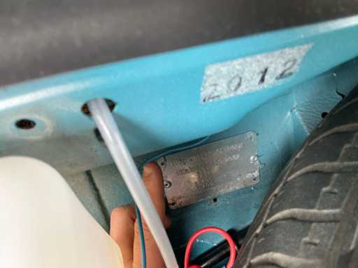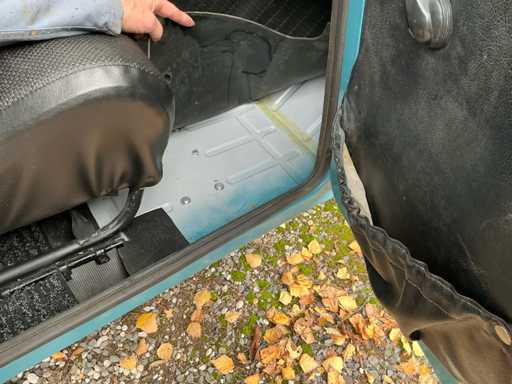 De carrosserie is netjes afgewerkt in blauwgroene lak met crèmekleurige details aan bumpers en velgen.