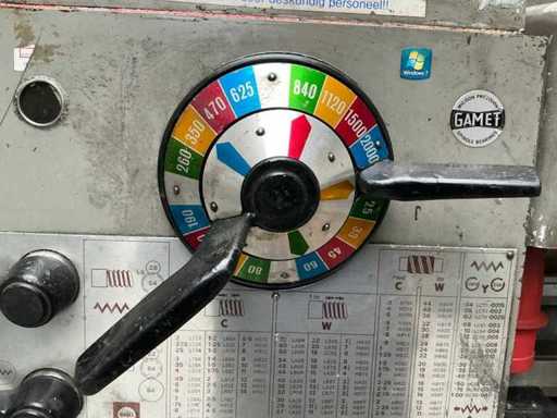 Center hoogte boven slee 125 mm; boven bed 210 mm