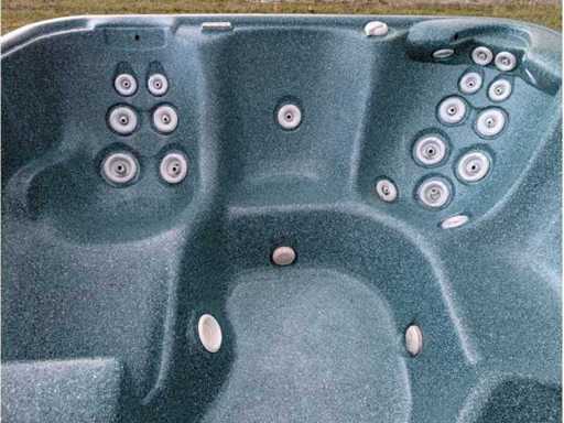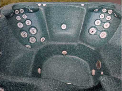 Voorzien van Amerikaanse jacuzzi; nek/schouder massage; 1 lig plaats; 5 zit plaatsen; automatisch filtersysteem; kunststof omkasting; niet getest op functioneren (Marge, geen BTW)