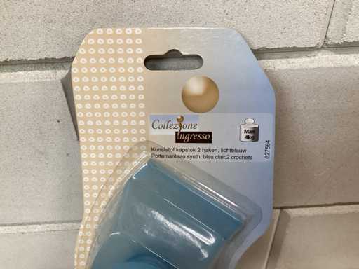 kunststof kapstok, 2 haken, lichtblauw, 4 kg belastbaar inclusief bevestigingsmateriaal
