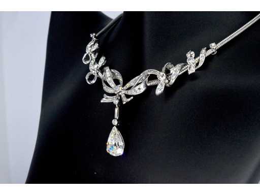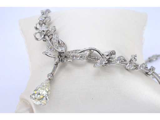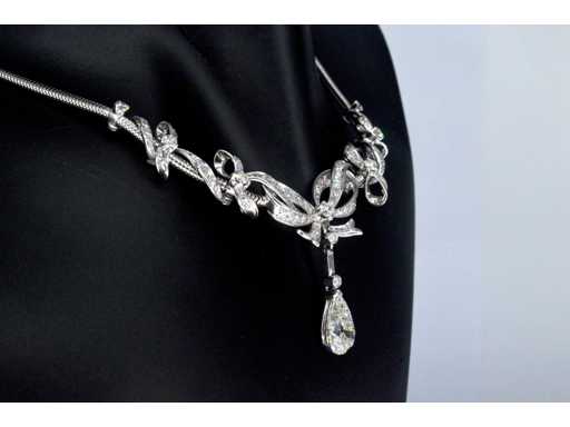 Belangrijk collier met een grote peer vorm diamant van 3.50 carat en natuurlijke diamanten