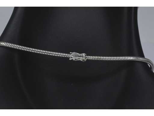 Diamant: Natuurlijk; Aantal: 1 stuk; Slijpvorm: Peer vorm geslepen; Gewicht (carat): 3.50 carat; Kleur: Warm getint; Zuiverheid: VS-SI; Slijpkwaliteit: Zeer mooi geslepen uit de tijd; Diamant (secundair): Natuurlijk; Aantal diamanten: 80 stuks; Slijpvorm: Swiss geslepen; Gewicht (carat): 1.20 carat; Kleur: F-G; Zuiverheid: VS; Diamant (secundair): Natuurlijk; Aantal diamanten: 9 stuks; Slijpvorm: Briljant geslepen; Gewicht (carat): 0.75 carat; Kleur: F-G; Zuiverheid: VS; Slijpkwaliteit: Zeer mooi; Diamant (secundair): Natuurlijk; Aantal: 1 stuk; Slijpvorm: Baguette geslepen; Gewicht (carat): 0.10 carat; Kleur: F-G; Zuiverheid: VS; Slijpkwaliteit: Zeer mooi; Juweel: Halsketting; Gewicht: 25.1 gram; Afmetingen/lengte: 41 cm; Materiaal: 14K goud (585); Conditie: Zo goed als nieuw; Verpakking: Luxe sieradendoos; Toelichting: De kwaliteit is overgenomen van het rapport behorend bij item. De waardebepaling is een beoordeling van een gecertificeerde diamantair, gebaseerd op consumentenprijzen.; Consumentenprijs: € 108.500,-