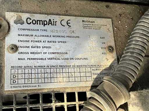 Compressor type H2180S G4, 7.0 bar, 2750 rpm. Totaal gewicht 1060 kg.