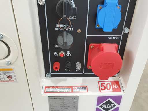 COMPAL POWER VG-R110 elektrische generator, supergedempte, elektrische ontsteking, dieselmotor met verbruiksreductiesysteem, gestabiliseerde stroombescherming, elektronische spanningsregeling Uitgangen 220/380 Volt, vermogen 10 kW-11 kVA