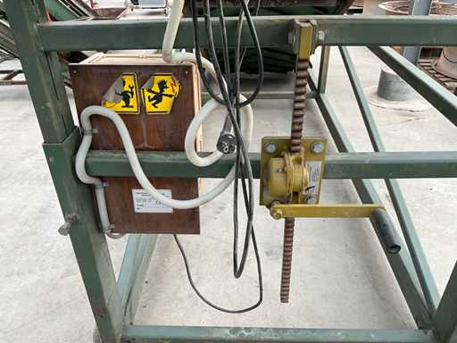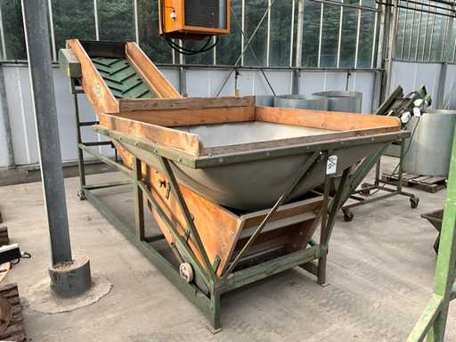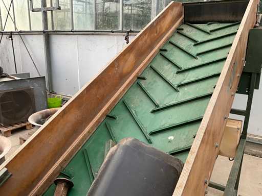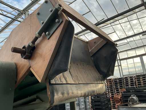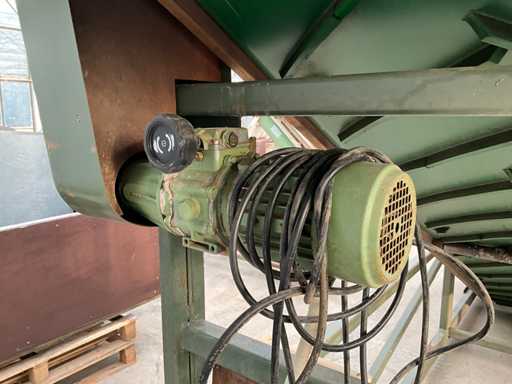 Aansluiting 230V; dump hoogte met slinger verstelbaar, huidige hoogte 200 cm; band afmeting LxB 400x80 cm; bunker afmeting 170x170 cm