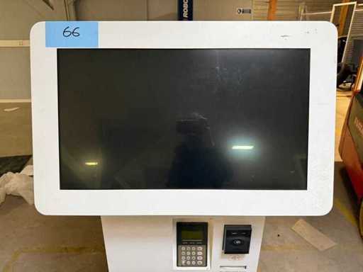 1 Complete terminal met nieuw 70 x 40 cm touchscreen + POS-kaart + contactloze POS + bonprinter + NC-lezer + interne pc + USB-poort - Schermdetails Merk: Iiyama Prolite; Type: TF3238MSC-W2AG; 12-punts capacitief touchscreen; Full HD 1920 x 1080 resolutie; Interface via USB; Invoer: HDMI, VGA, DVI, Displayport - Totale afmetingen Hoogte: 160 cm; Breedte: 86 cm; Diepte: 51 cm