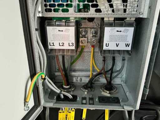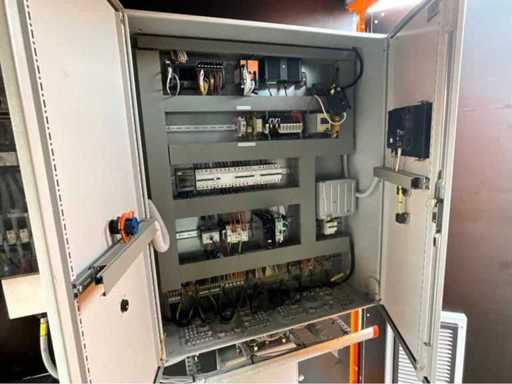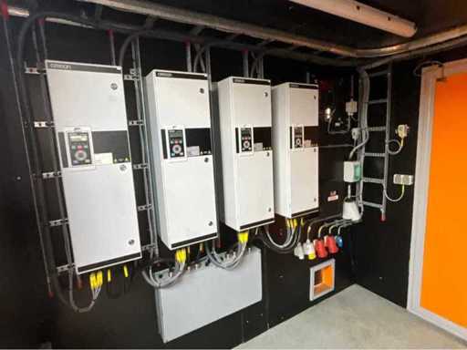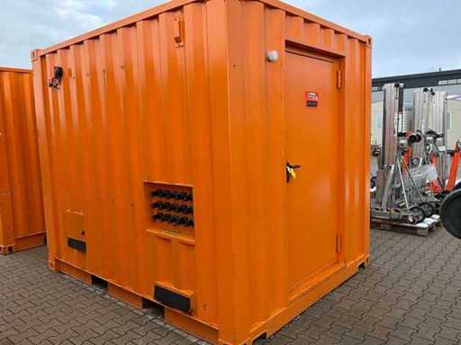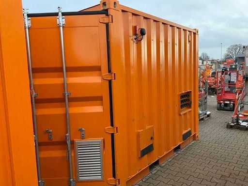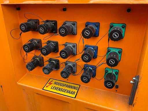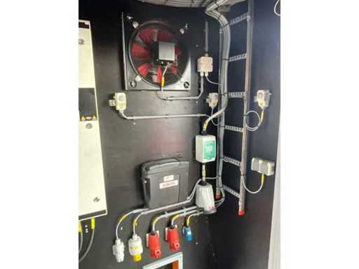 10 ft.-container uitgerust met een PLC-besturingssysteem voor het beheren van vier motoren van elk 45 kW, 3x reeks Powerlock aansluitingen 600 Volt; stroomaansluiting 400 en 230 Volt; verlichting; 1x toegangsdeur; 1x dubbele containerdeur; twistlocks; heftruck vorksleuven