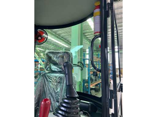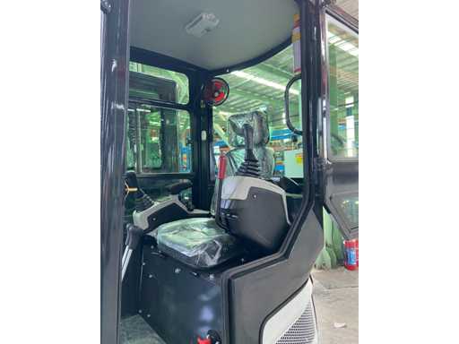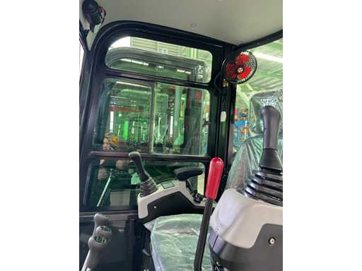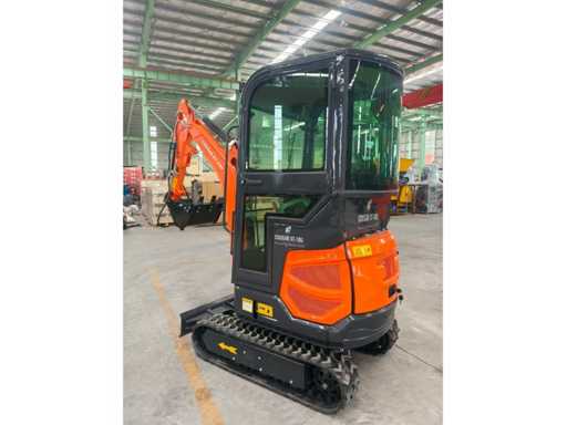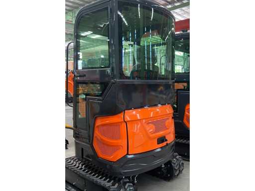1800 kg minigraafmachine met 3 cilinder Kubota D902 eur5 dieselmotor van 11.8 KW. uitgerust met servo bediening. Voorzien van cabine, zwenk giek met radius van 1500mm, dozerblad 1100mm, hydraulisch bakwisselsysteem, hydrauliekpomp 22L/min, opbreekkracht 10KN, tankinhoud 9.5 liter. ongebruikte machine