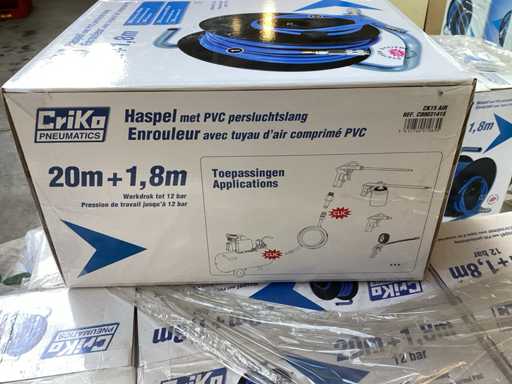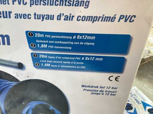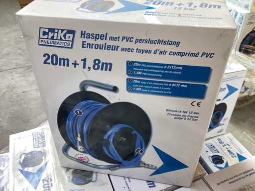 Haspel met 20 meter luchtslang, maximaal 12 bar, pvc