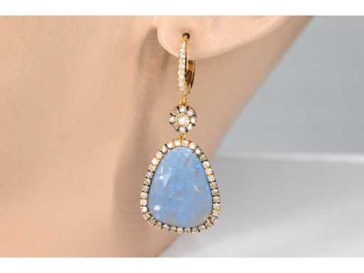 Crivelli - Gouden oorhangers met grote natuurlijke edelstenen en diamanten