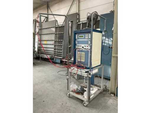 Vulinstallatie van isolatieglas met gas (argon/krypton) met: (1x) Besturingsconsole Type: CP896, Capaciteit: ca. 300 – 800 ruiten per shift, (1x) Gas- meetunit, Type: MU 385X, Gasvulgraad: tot ca. 90–95%. (1x) DCL meng- doseringsunit, Type: Arfan S3-GS 24S. Voorzien van: Powerline automatische lijnbesturing.