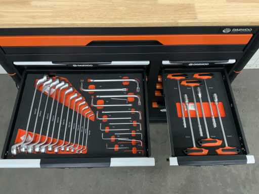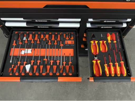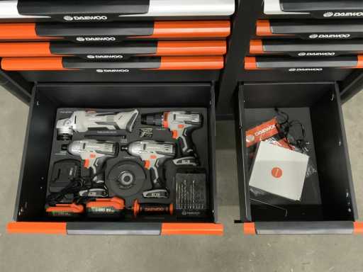 Daewoo - DAMWS267 + 4 in 1 set accugereedschap - Gereedschapswagen 13 laden