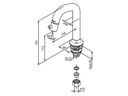 Hoogte uitloop 112 mm