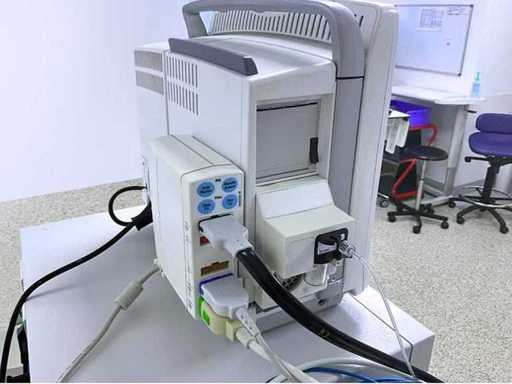 • 1 GENERAL ELECTRIC CARESCAPE B650-monitor (ECG, PNI, SPO2, Resp, T°, EtCO2, halogeengassen)
