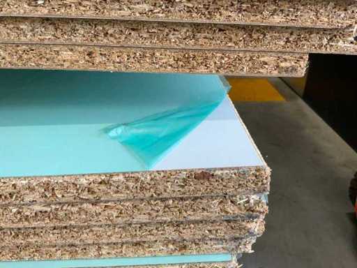 Platen zijn ca 2800x2070x20mm; circa 210 platen; diverse soorten; afmetingen kunnen afwijken; decoratie spaanplaat; sommige dubbelzijdig gelamineerd; past in 1 tautliner; 7 pakken; stapel met gele sticker nummer 1;