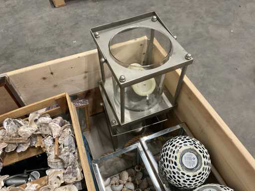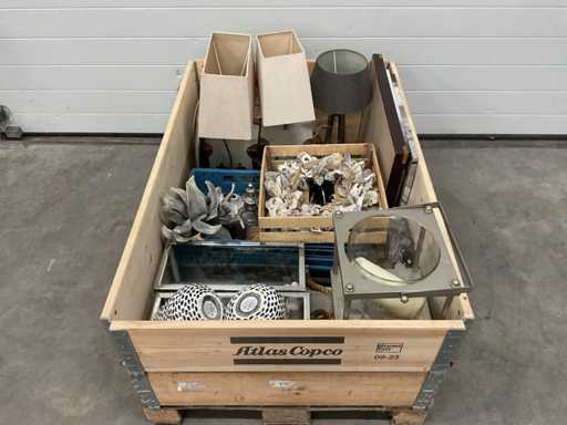 o.a. schelpen krans, windlichten, wanddecoratie, tafellampen, etc.