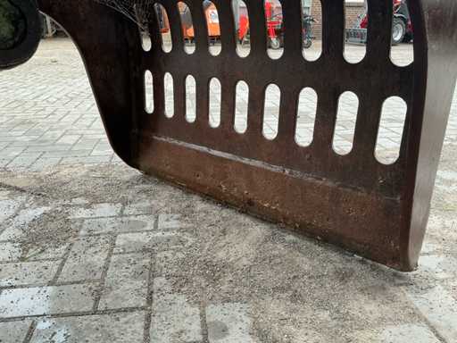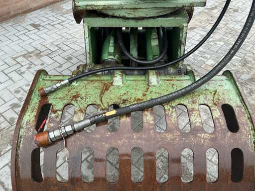 Voorzien van: DEHACO DSG 1200, gewicht:1500 KG, ophanging:CW 40, slangen, snelkoppelingen, 2 hydromotoren, 2 hydr. cilinders, gelaste messen, 360º hydraulische rotatie, door de speciale cilinder-opstelling en de evenaar bewegen deze minimaal waardoor er nagenoeg geen slijtage aan de interne slangen ontstaat.