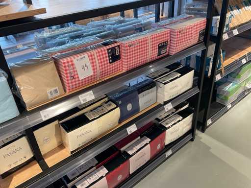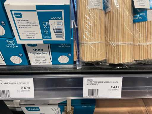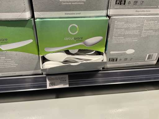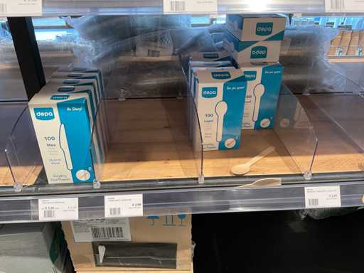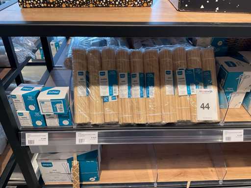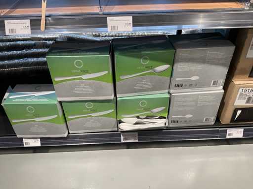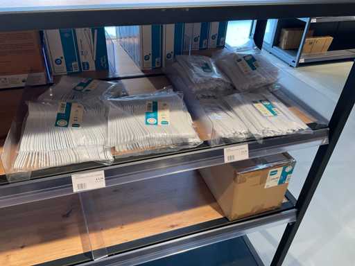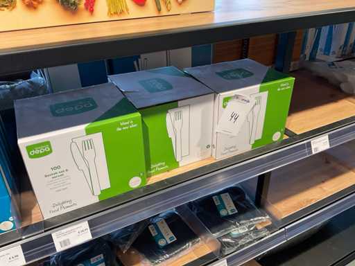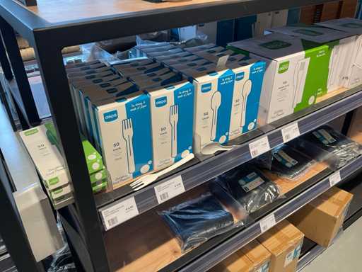 Inhoud van 1 zijde stelling. Bestaande uit eetstokjes, servetten, bestek. Exclusief stelling.