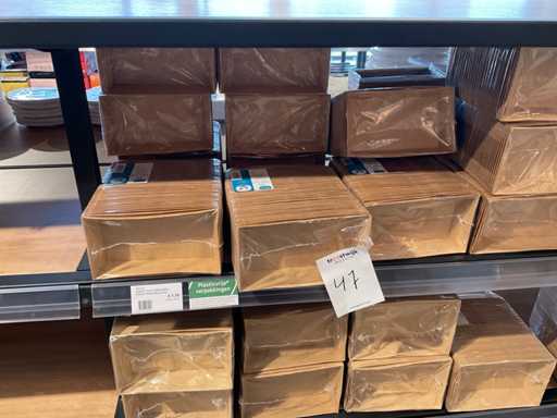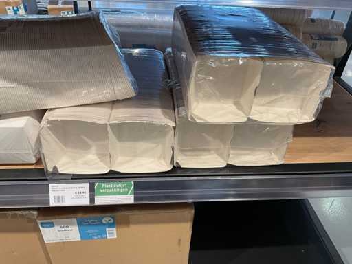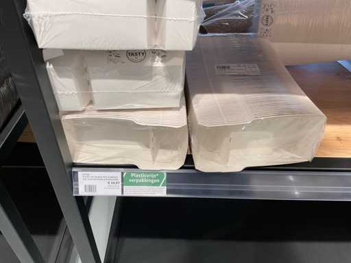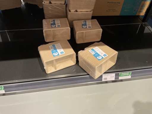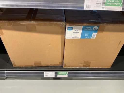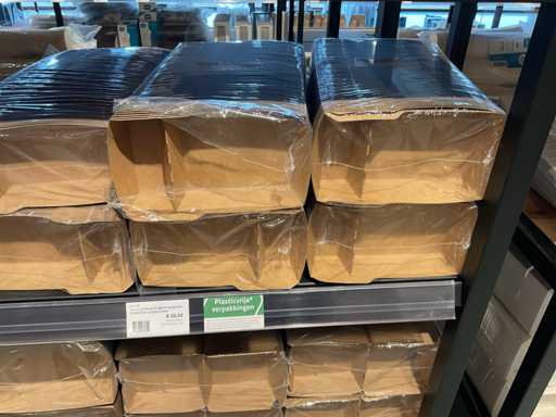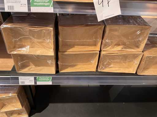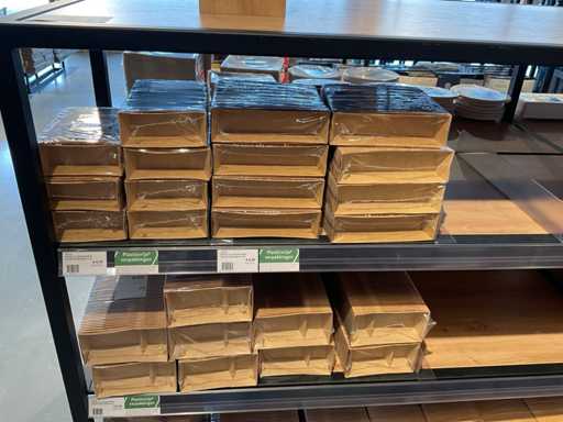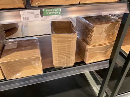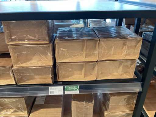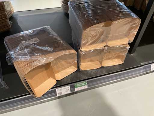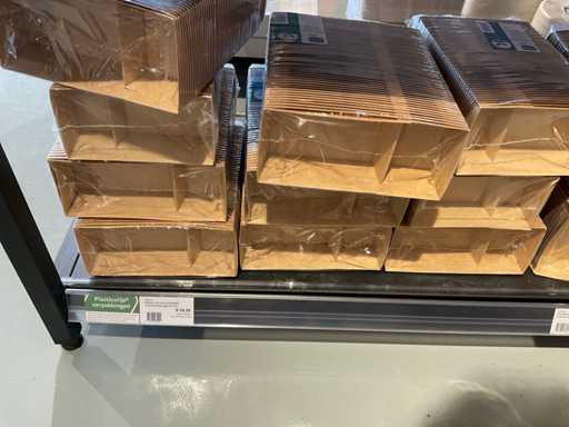 Inhoud van 1 zijde van stelling, bestaande uit kartonnen snack, hamburger,bakjes, frietzakjes. Exclusief stelling.